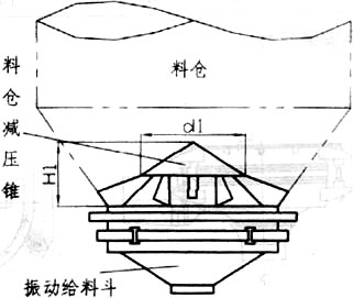 慣性振動給料斗在設(shè)計計算中已考慮了一定的倉壓,但建議在料倉內(nèi)物料高度大于2m時,在料倉內(nèi)安裝料倉減壓錐,以確保振動給料斗更穩(wěn)定地工作,特別是確保其給料精度更趨準(zhǔn)確。料倉減壓錐應(yīng)焊接在料倉內(nèi),并保持平穩(wěn)。料倉減壓錐安裝圖,安裝尺寸如下: